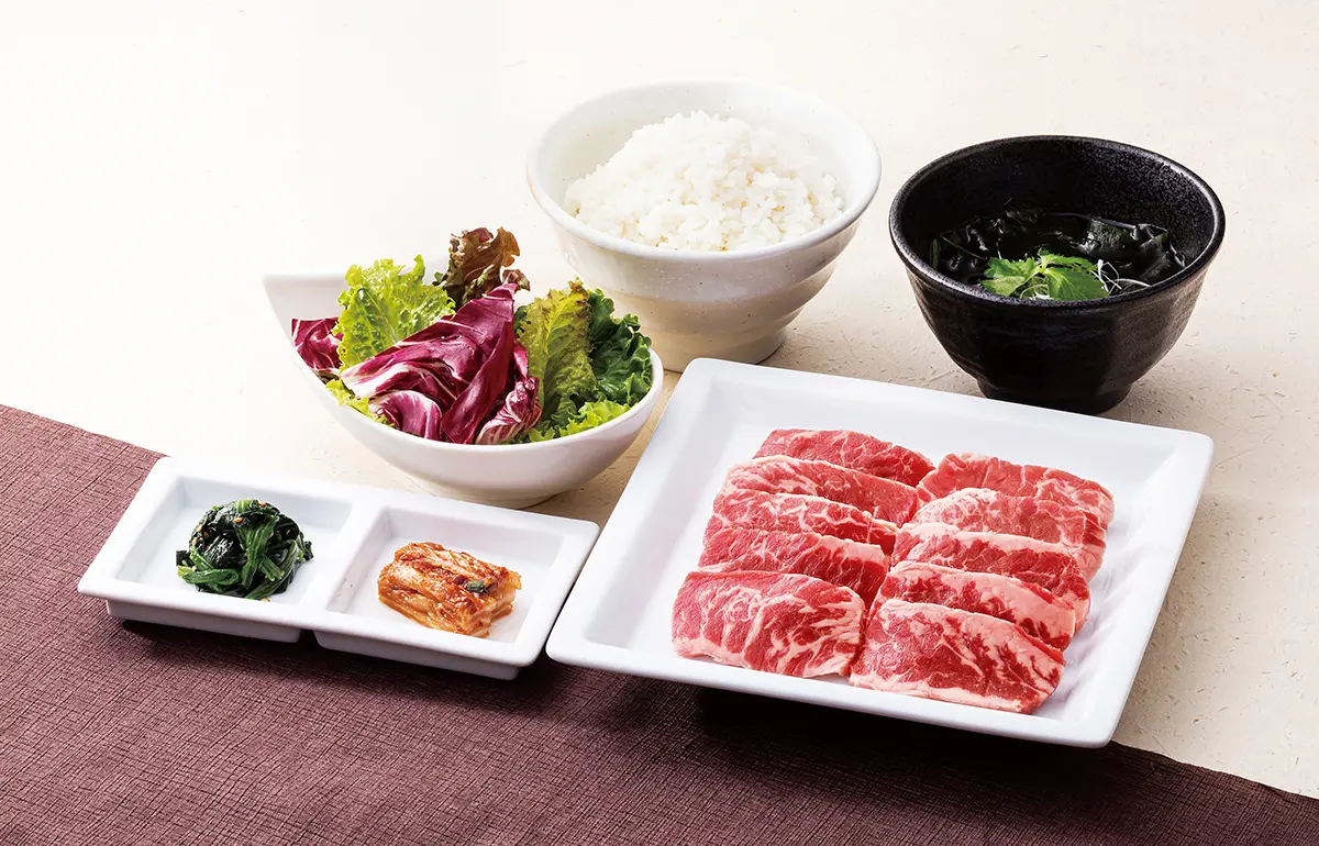 サラダ・漬物・ごはん・スープがついたおすすめ焼肉セットです。